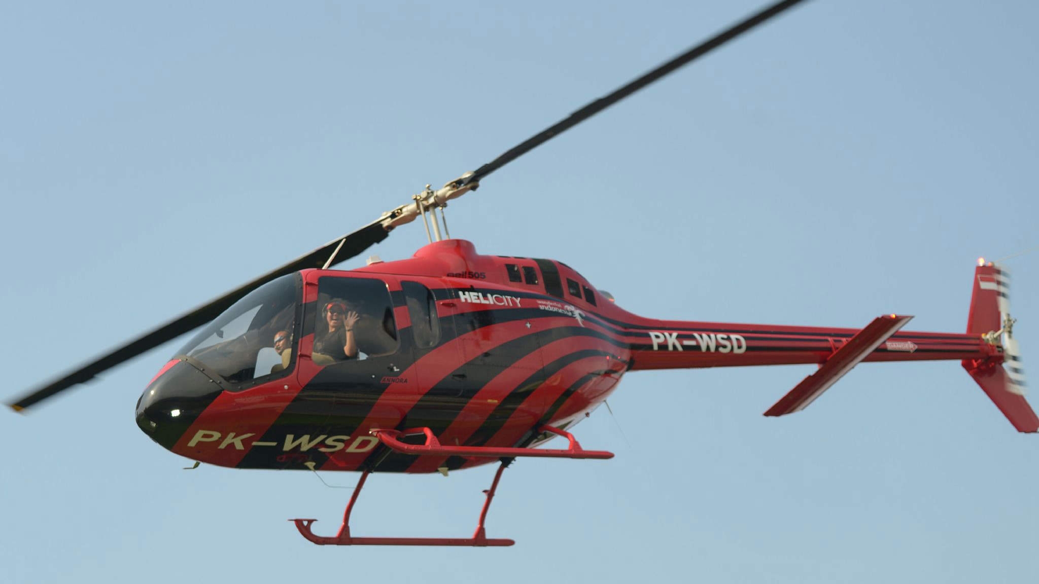 [Top image: File photo shows a Helicity helicopter flying in Jakarta, Indonesia. /VCG Photo]
