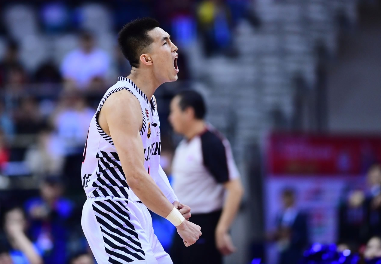 Guo Ailun celebrates during the game against Zhejiang Guangsha Lions. /VCG photo