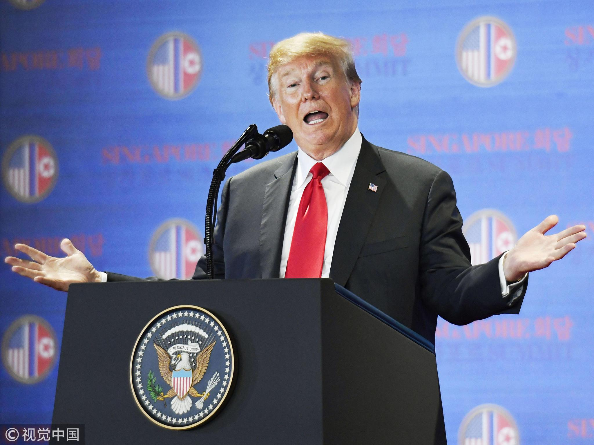 US President Donald Trump speaks during a press conference in Singapore on June 12, 2018, after holding talks with DPRK leader Kim Jong Un. /VCG Phtoo
