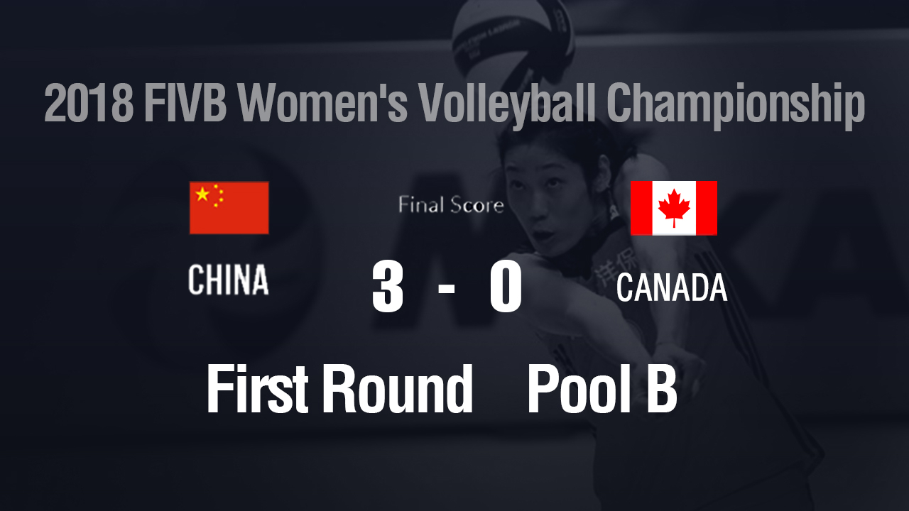 After the break, China seized the match point due to Zhu Ting's service, and middle blocker Hu Mingyuan blocked Brianna Beamish's attack. China won the third set with a total score of a 3-0 win over Canada – a three straight win in the Pool B's competition.