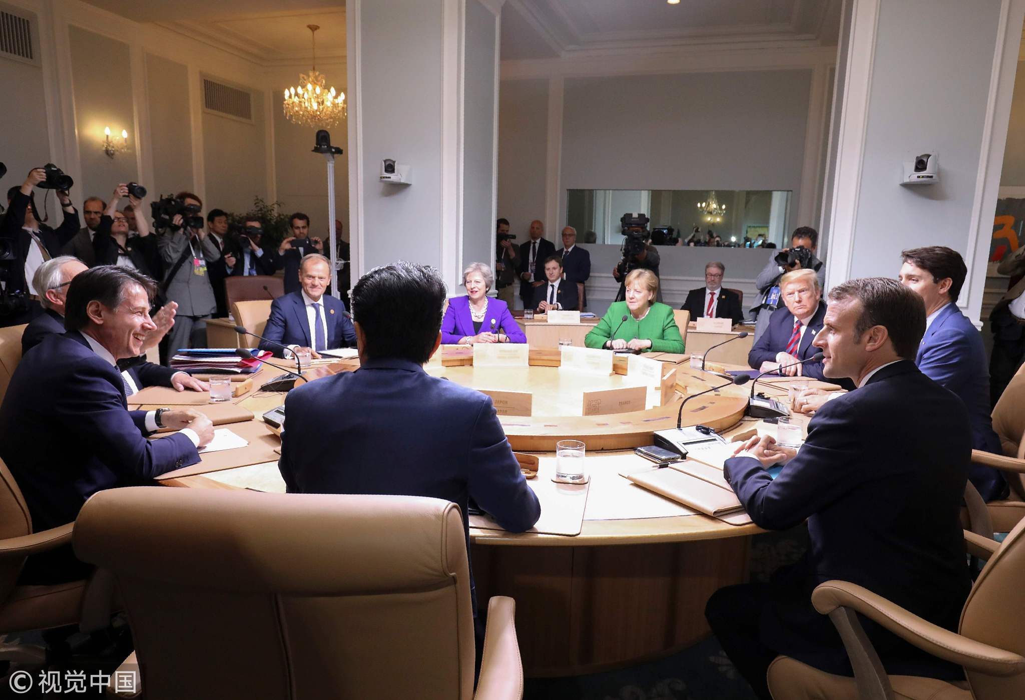 June 8, 2018: Leaders of the G7 participate in a working session of the G7 Summit in La Malbaie, Quebec, Canada./ VCG Photo