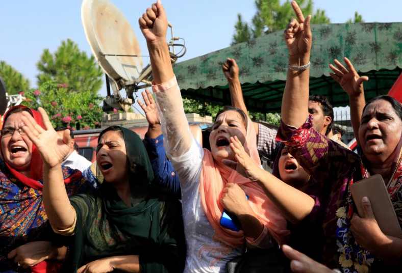 Supporters of former prime minister Nawaz Sharif react as they celebrate following the court's decision in Islamabad, Pakistan, Sept. 19, 2018. /Reuters Photo