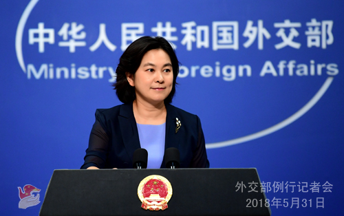 Hua Chunying, a spokesperson for the Chinese Foreign Ministry, speaks at a regular briefing in Beijing, May 31, 2018. /VCG Photo