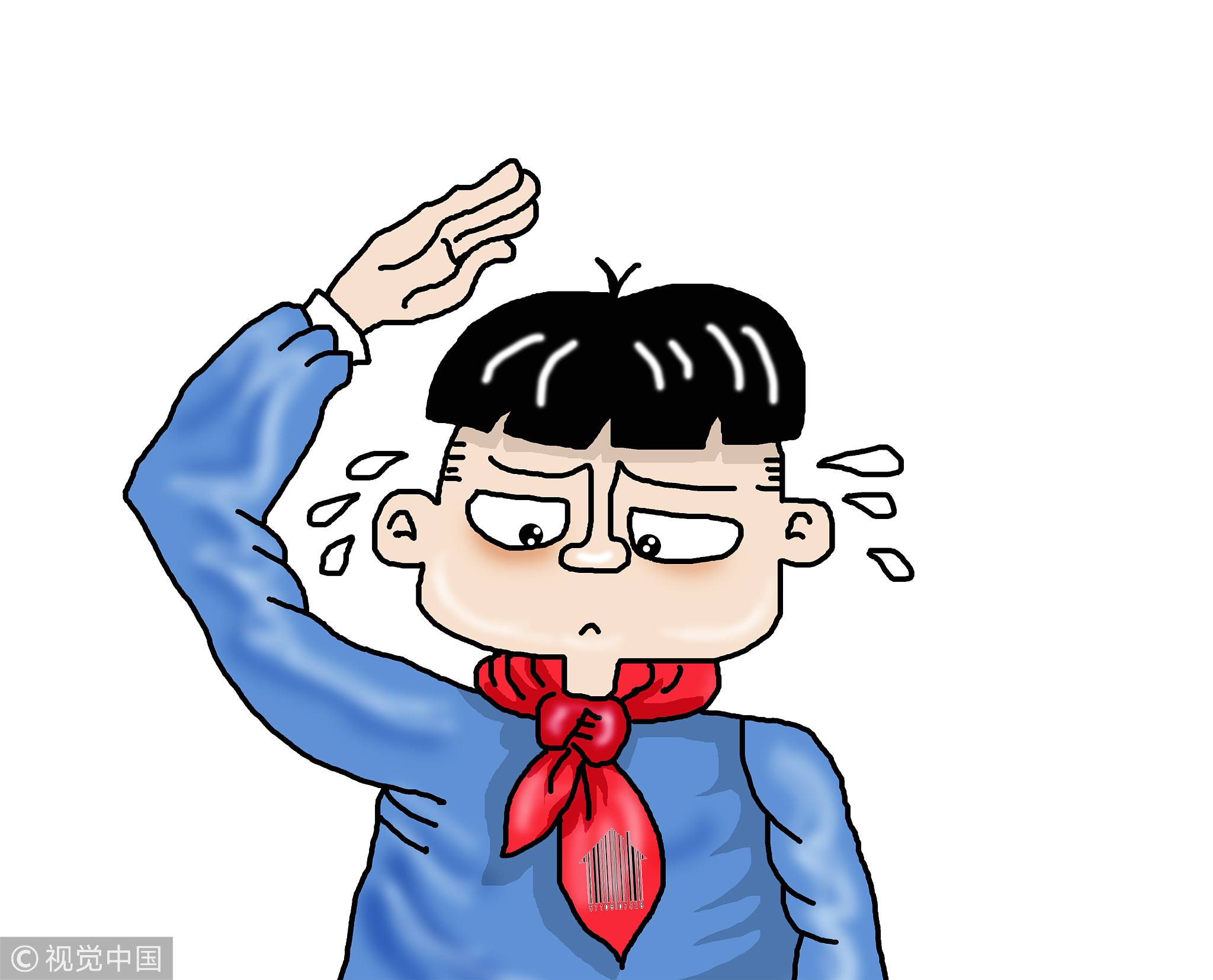 The triangle red scarf is the neckerchief worn by Chinese Young Pioneers. It represents the corner of the national flag and symbolizes the country's revolutionary tradition.