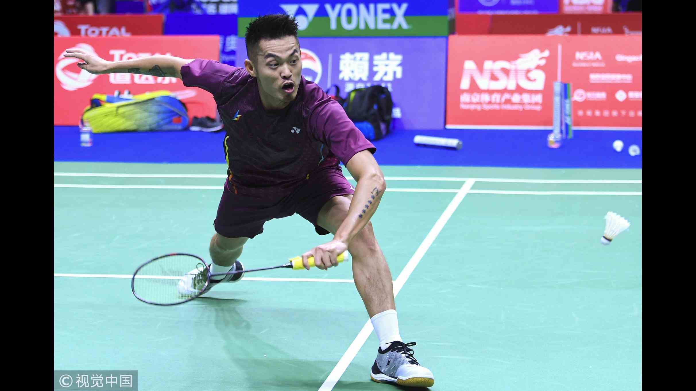 Chinese badminton player Lin Dan trains before the 2018 BWF World Championships in Nanjing on July 29, 2018. /VCG Photo