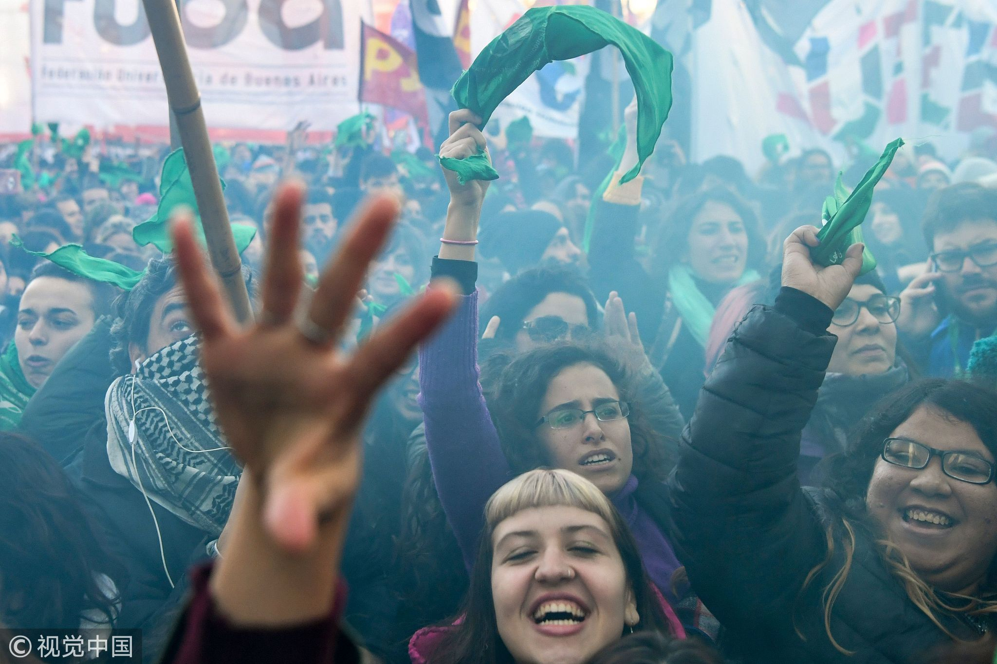 Pro-choice activists demonstrate in front of the Argentine Congress in Buenos Aires, June 13, 2018. /VCG Photo