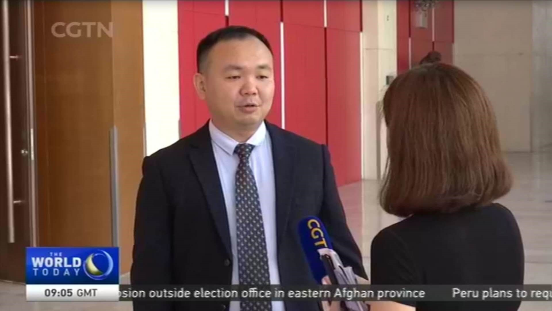 Professor Xiong Yu from Newcastle Business School speaks to CGTN after his speech at the Smart China Expo 2018. /CGTN photo