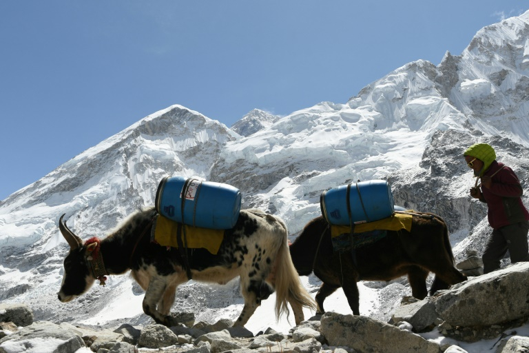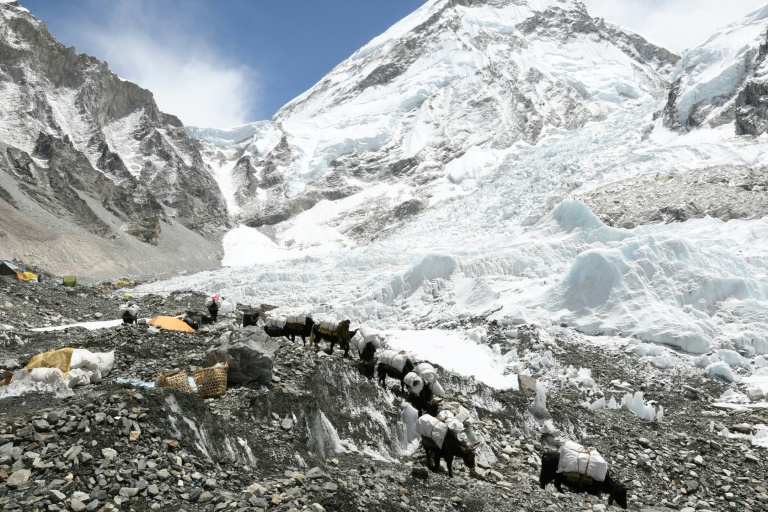 Around 2,500 yaks make that journey at the beginning of the spring climbing season in April to turn the rock-strewn glacier into the world's highest city for two months of the year.