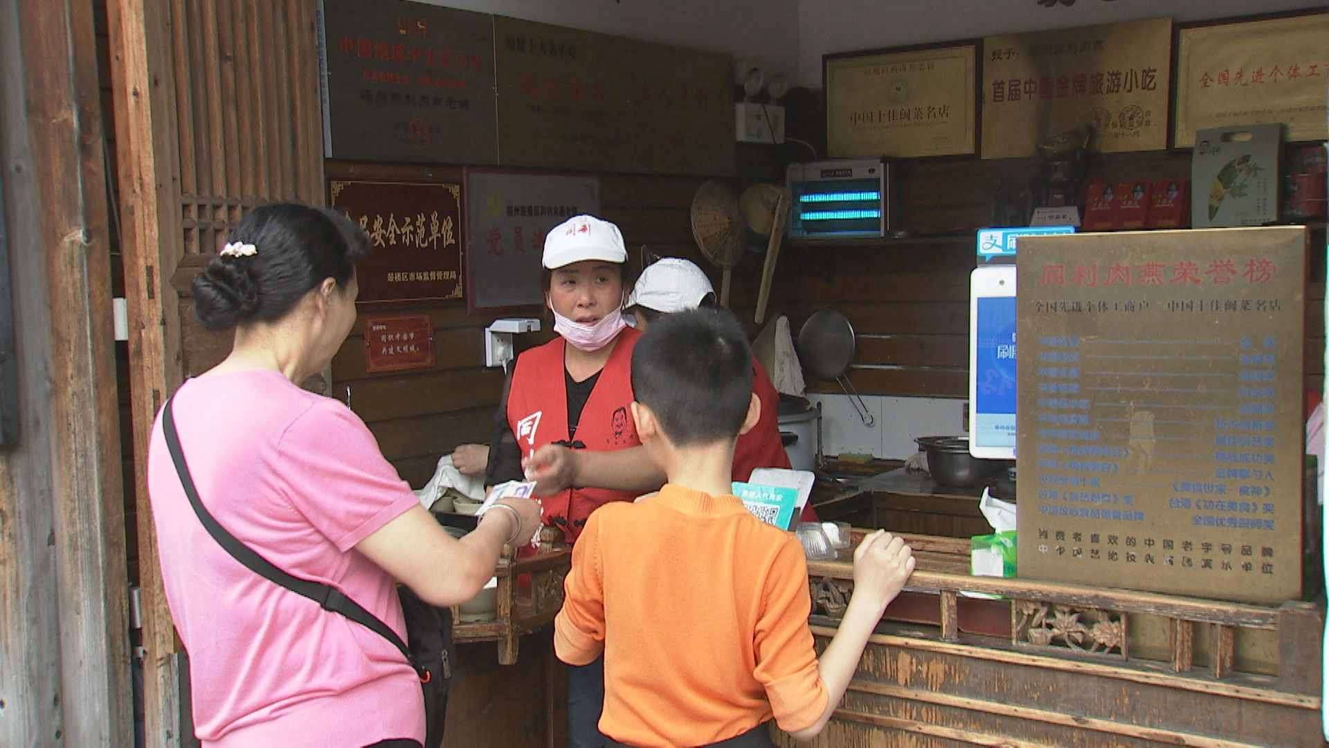 Most of the shops in Fuzhou's Sanfang Qixiang Street have been equipped with facial recognition machines from Ant Financial. /CGTN Photo