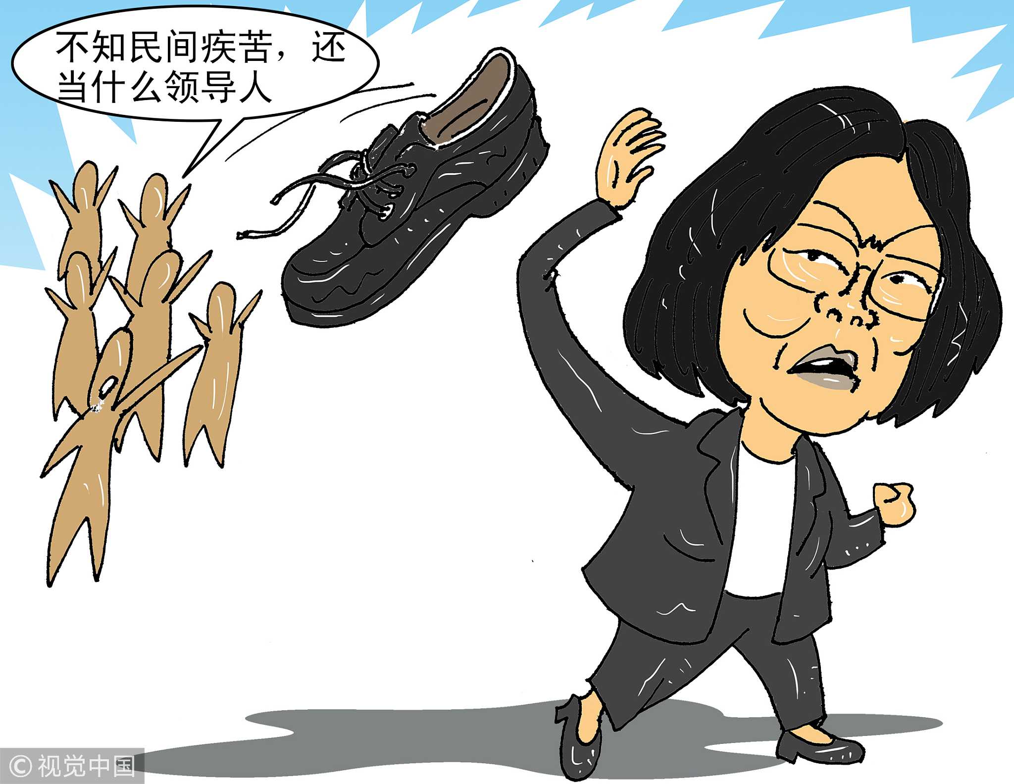 A cartoon depicting Tsai Ing-wen, criticizing her not caring people. /VCG Photo