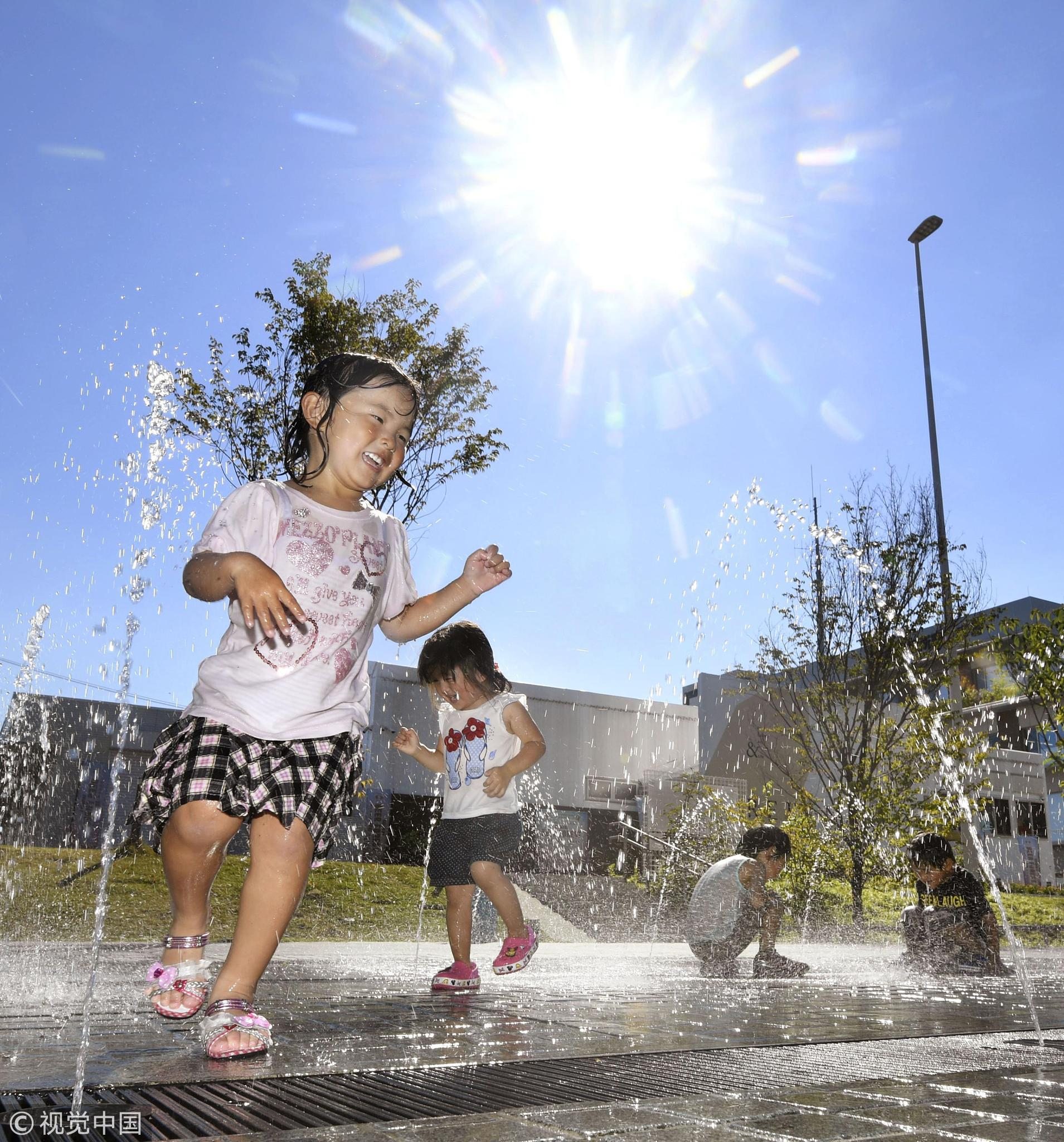 Children play in water in Tajimi, Gifu Prefecture, July 23, 2018. /VCG Photo