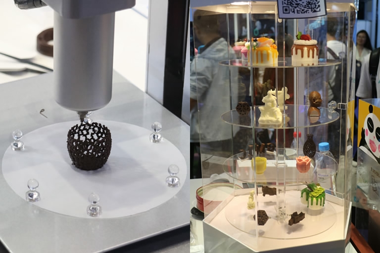 One of the most crowded spots in the exhibition area was the booth Shiyin, which demonstrates 3D chocolate printers. By scanning the QR code and drawing the things you want to print on your smartphone, a piece unique looking chocolate could be printed out in 3 to 5 minutes.