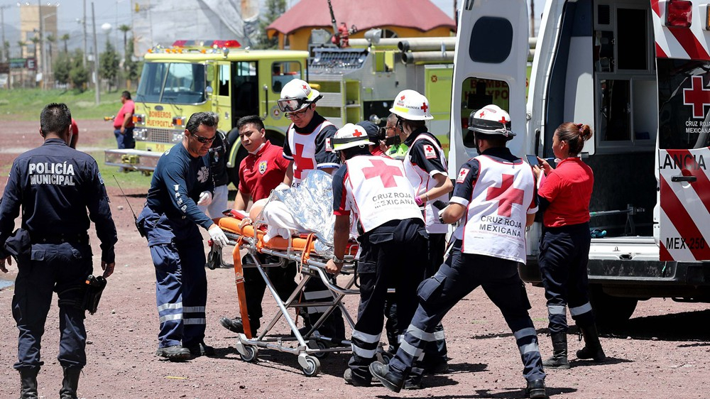 After a first blast in the municipality of Tultepec, firefighters, police and other rescue workers arrived at the scene when a second explosion occurred, the state government said in a statement.