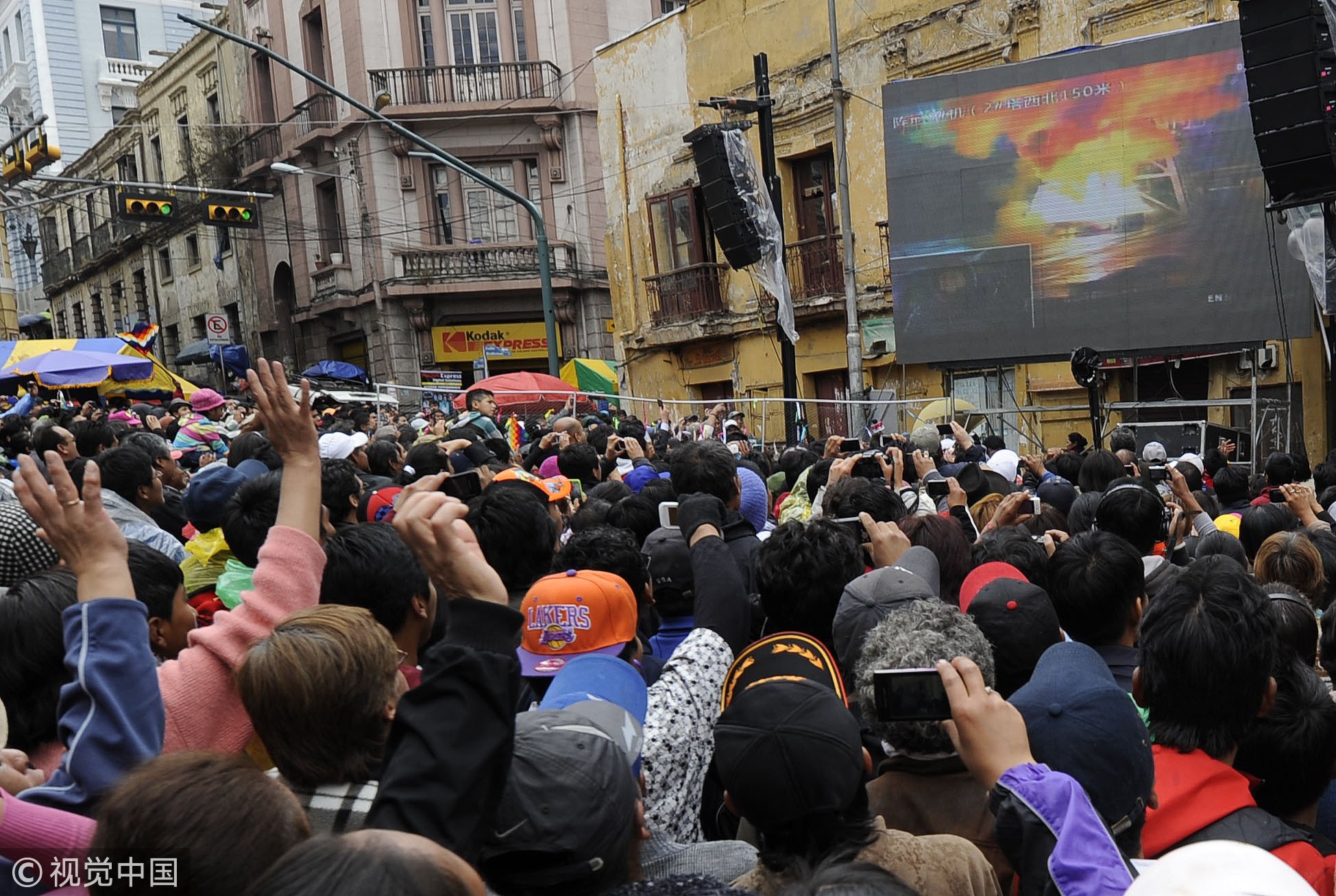 People watching live-broadcast of the launch of the Tupac Katari Bolivian telecommunications satellite from southwest China's Xichang Satellite Launch Center, in La Paz, Bolivia, December 20, 2013. /VCG Photo.