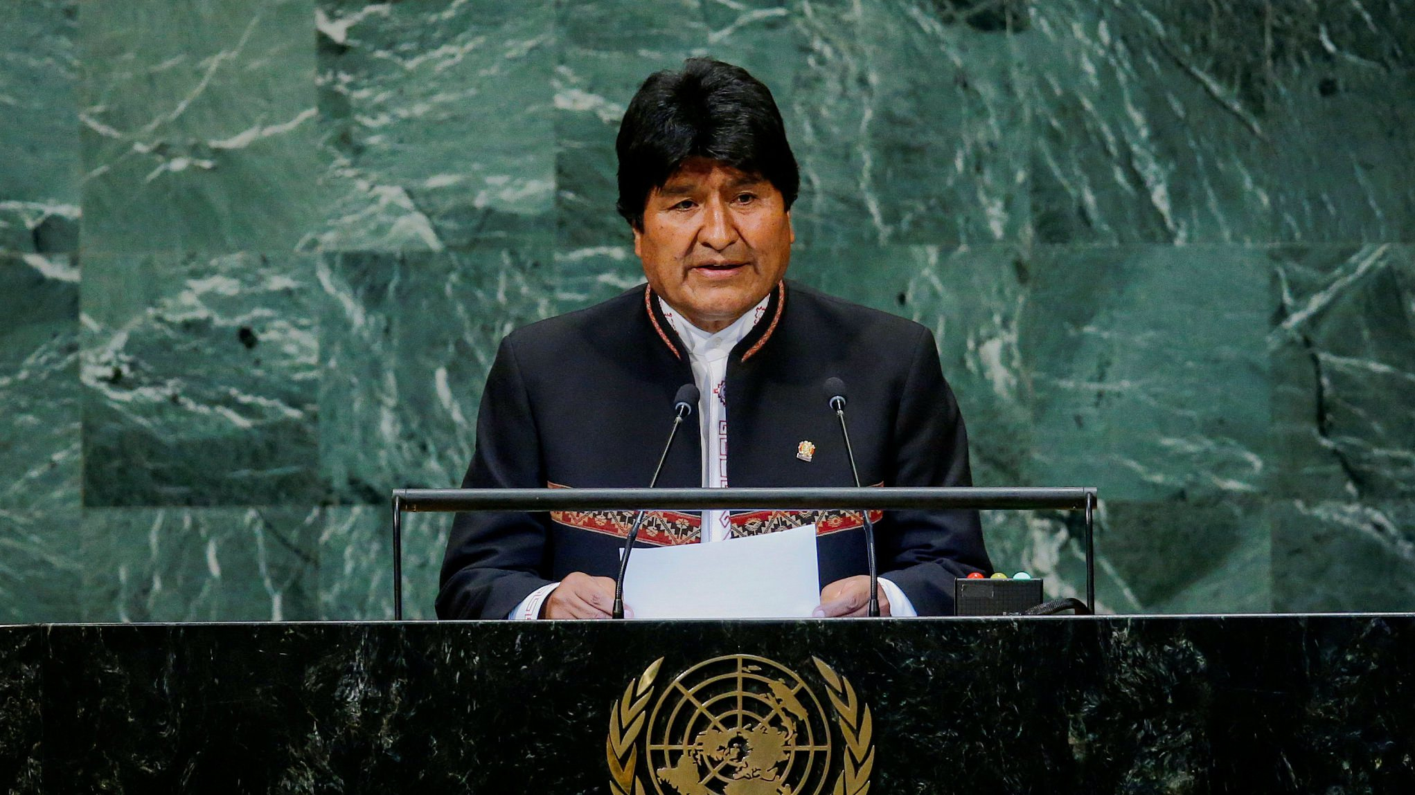 The president of Bolivia was the fifth to speak at the meeting, after representatives of the United States, France, Poland, and Equatorial Guinea.