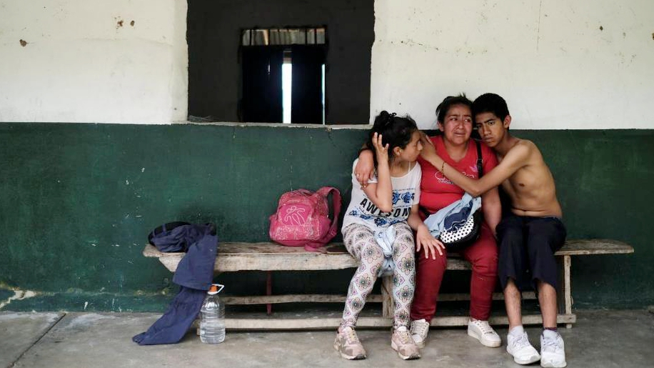Yeimy (C), 37, gets emotional as her daughter Paula and son Juan console her as they revisit their home where they lived twelve years ago, when she was raped by four rebel fighters during the five-decade civil war in Tolima, June 13, 2018. /Reuters Photo