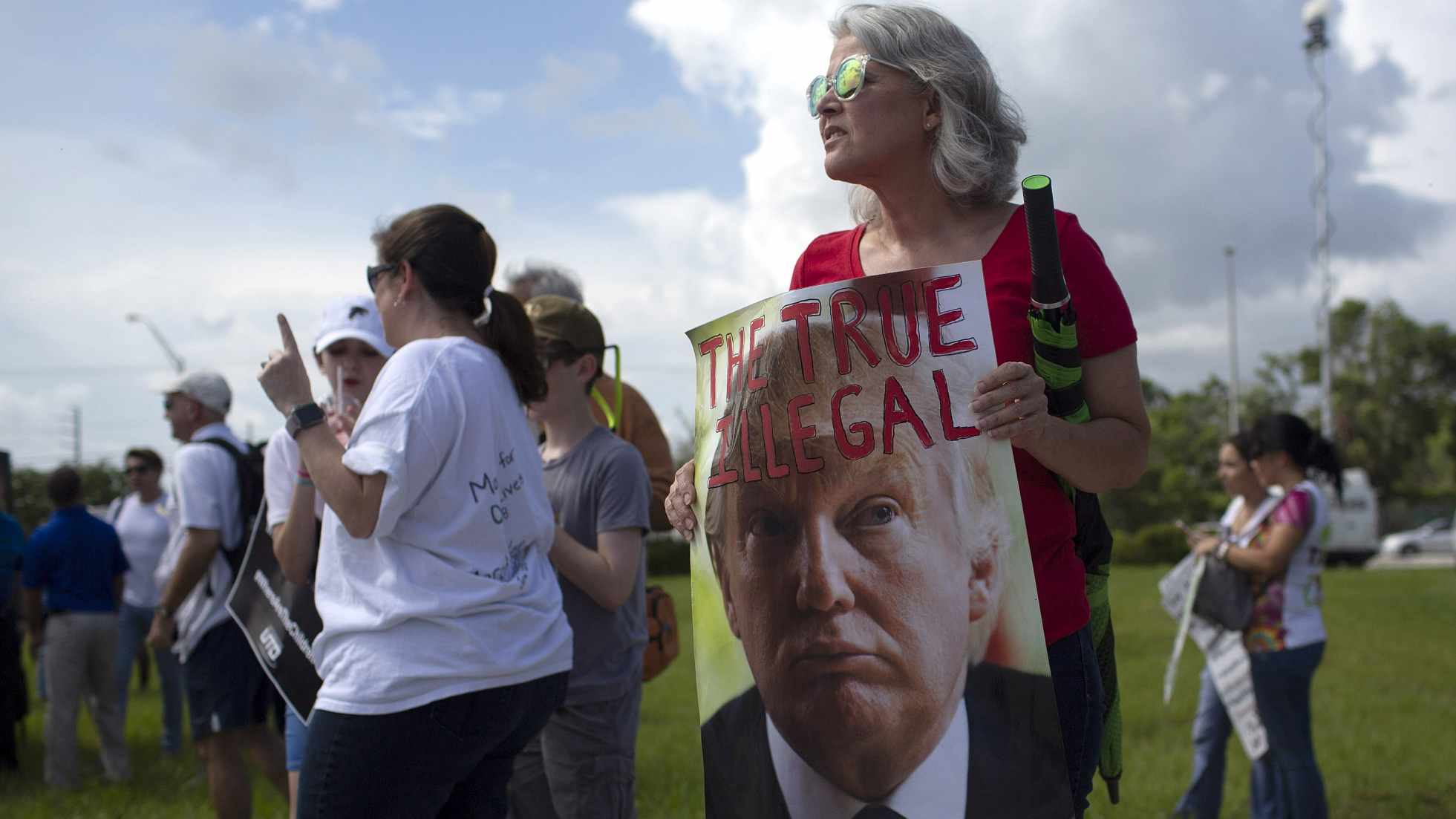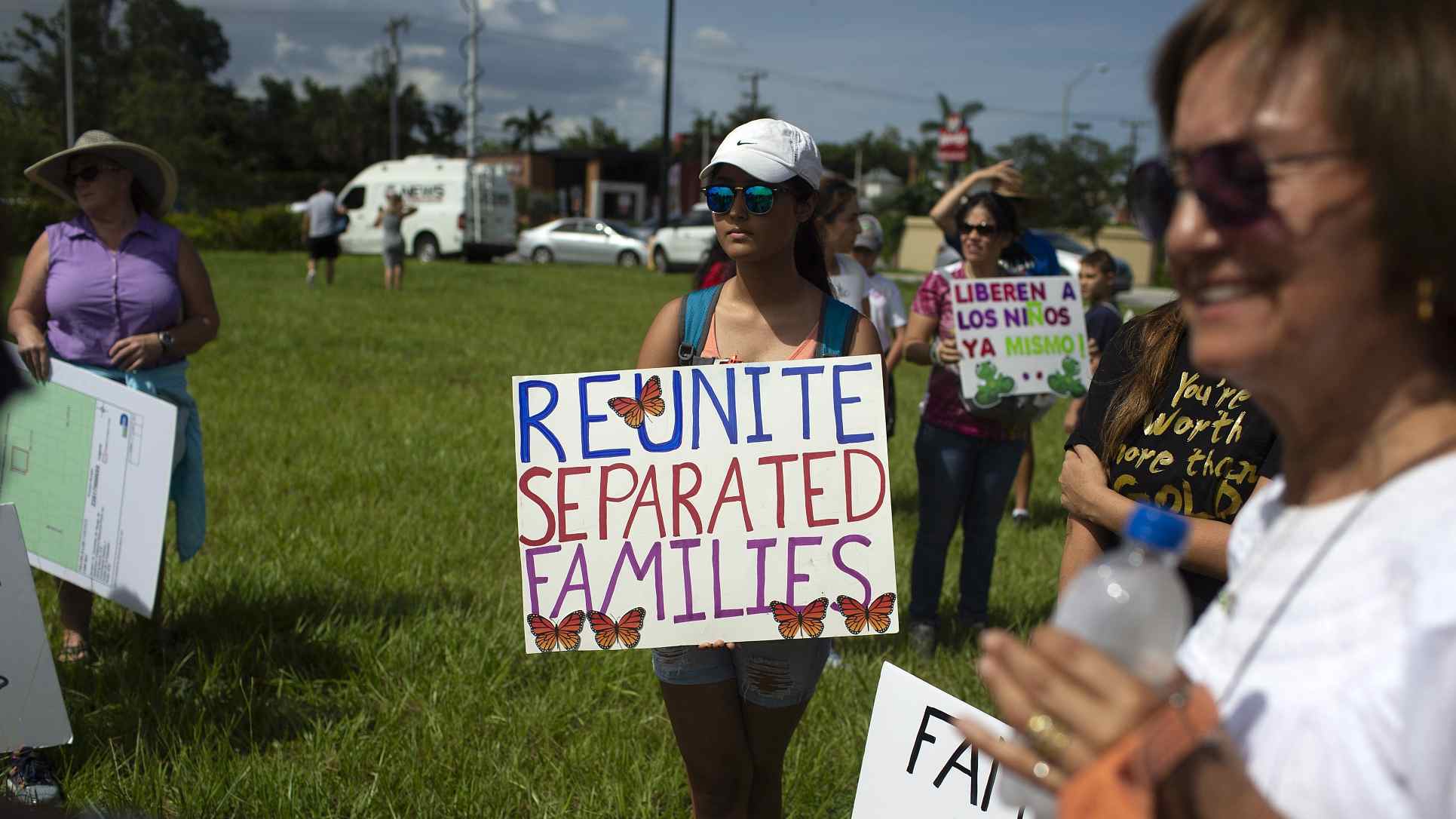 A demonstrator holds a sign during the 'Keep Families Together' rally in Homestead, Florida, US on June 23, 2018. /VCG Photo