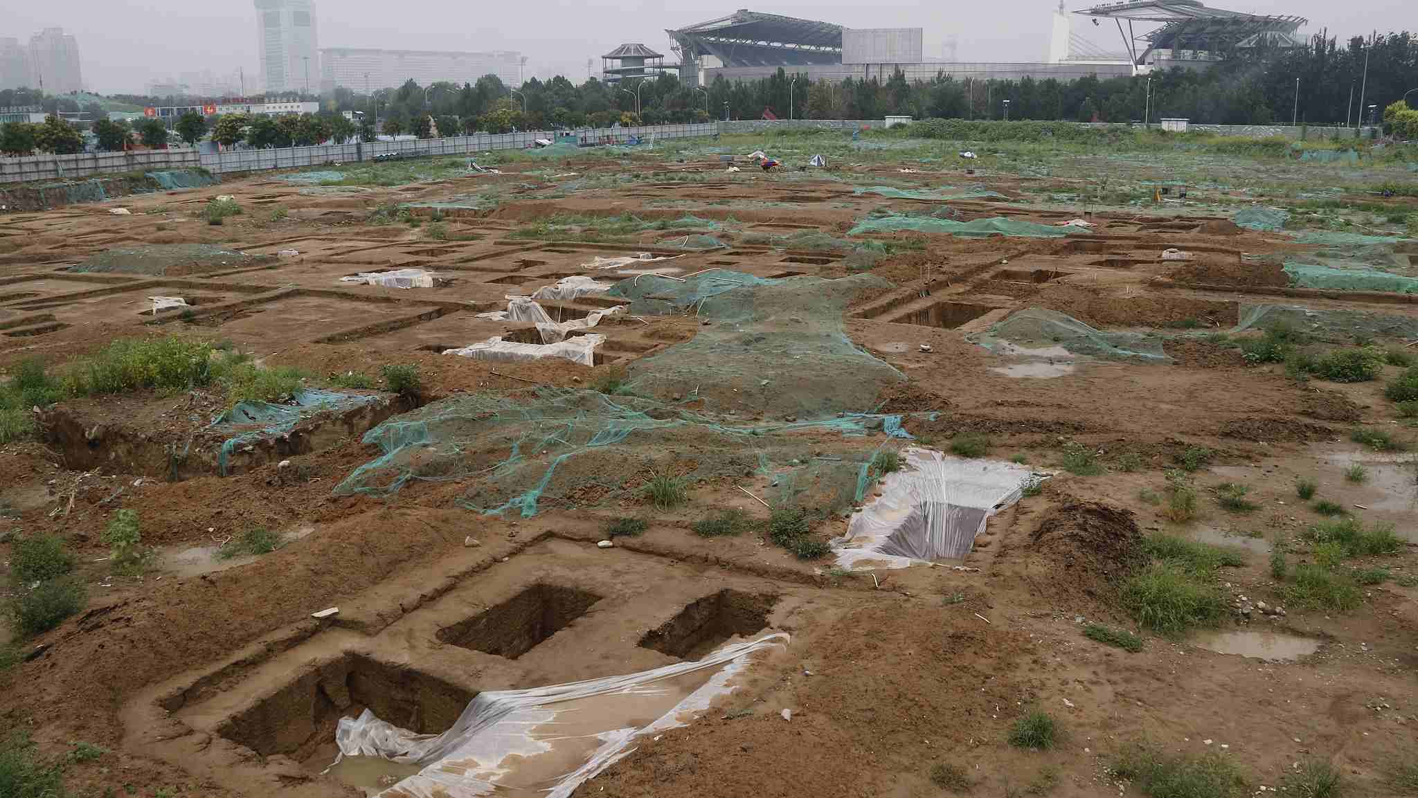 Around 300 tombs were found to the south of the Beijing Olympic Sports Center, with some skeletons clearly visible. According to archeologists, the tombs were built during the Qing Dynasty. /VCG Photo