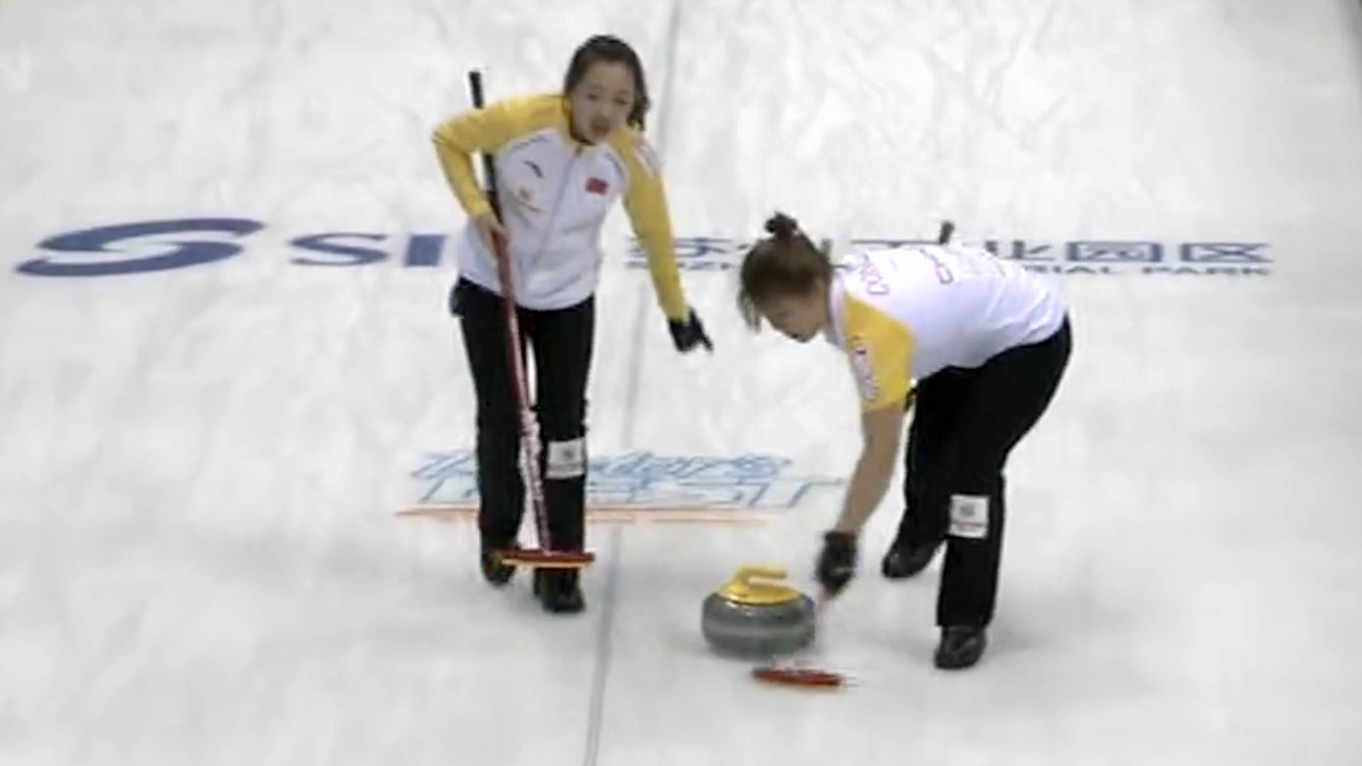China's women curling team in action against Sweden in the Curling World Cup 2018-19 in Suzhou, China, September 12, 2018. /VCG Photo