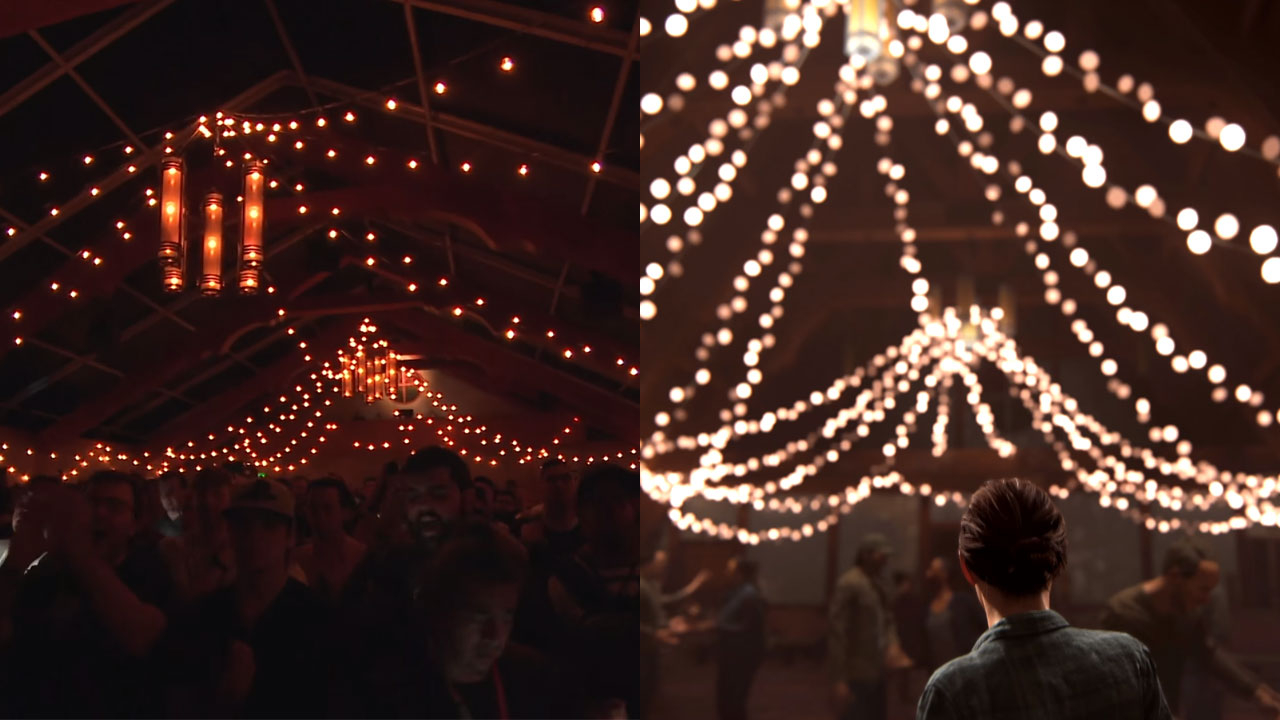 The PlayStation E3 event room (L) and the in-game footage of The Last of US Part II (R) /Screenshot from Sony
