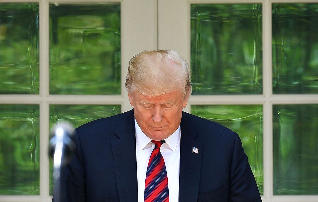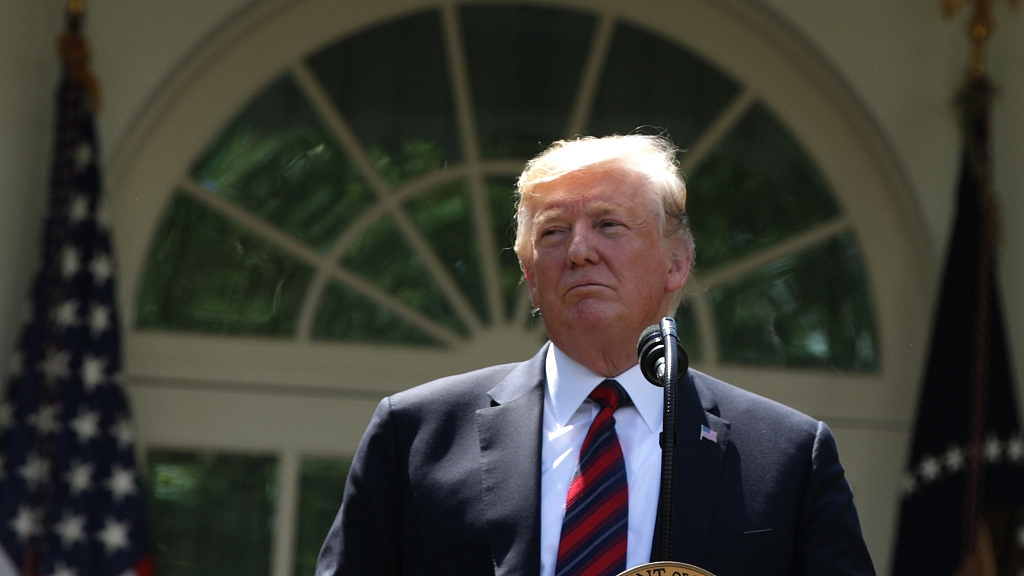 U.S. President Donald Trump looks down as he announces a new immigration proposal, in the Rose Garden of the White House, May 16, 2019. /VCG Photo