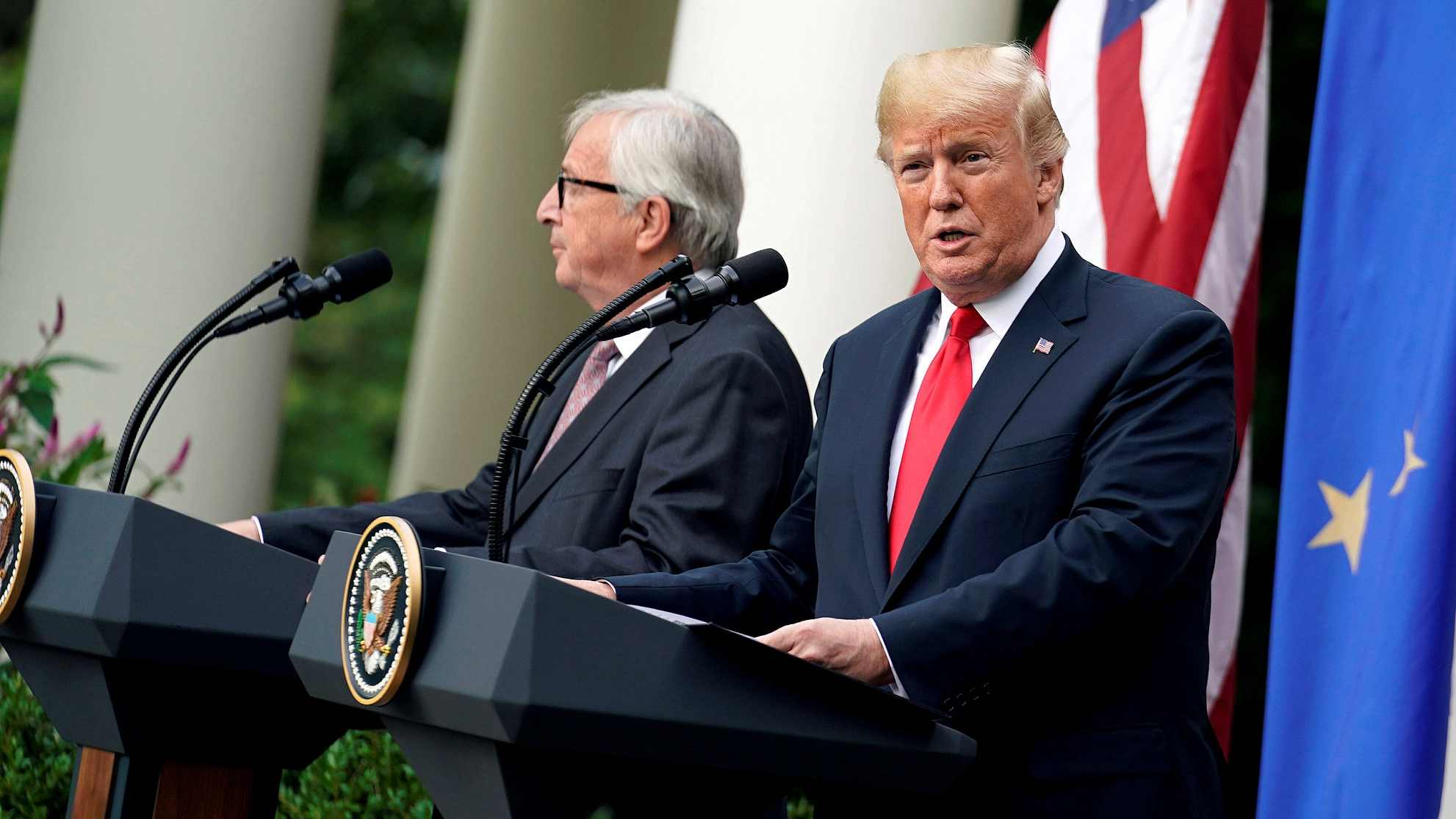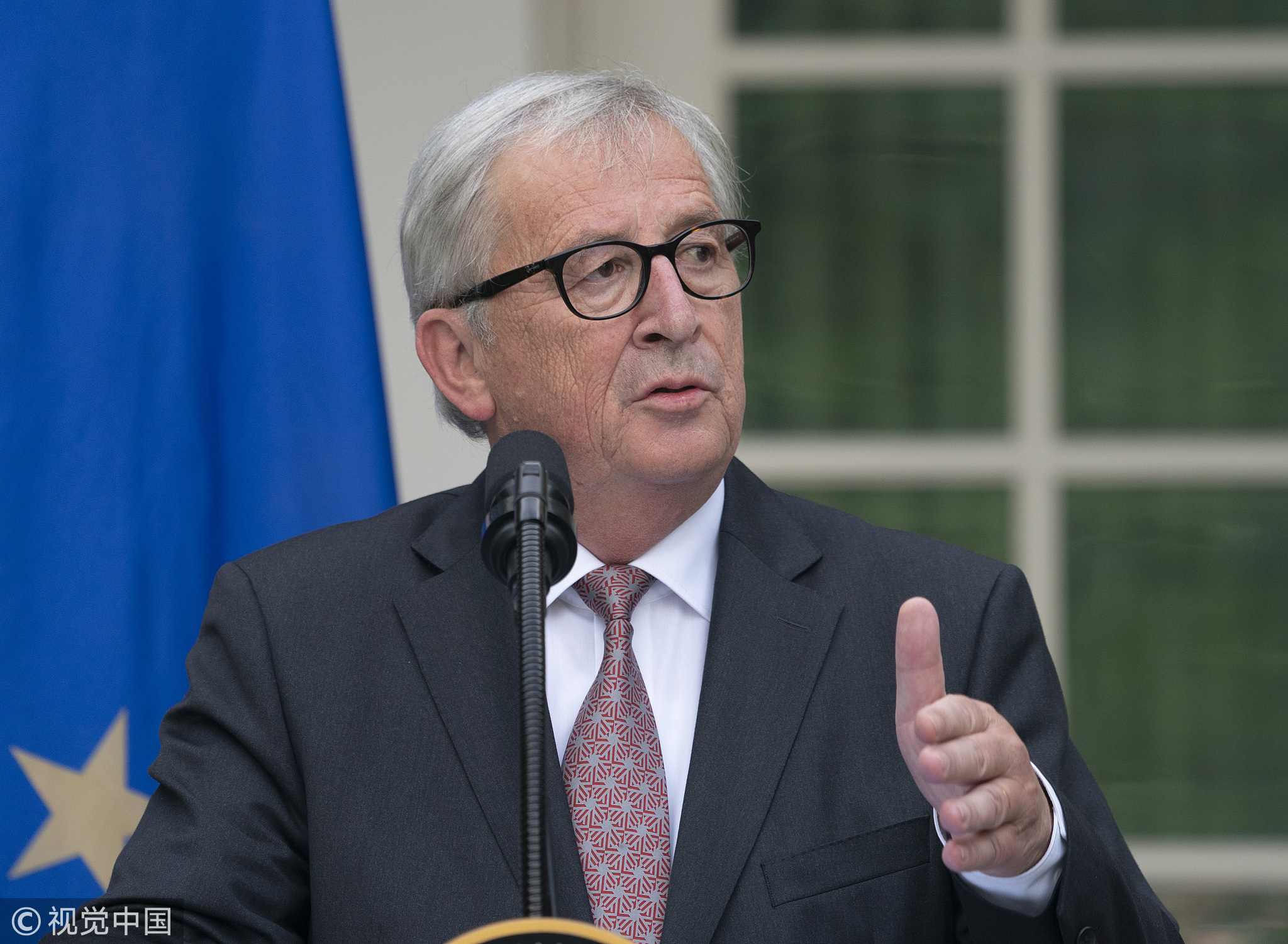 Jean-Claude Juncker, president of the European Commission, makes a statement on trade with US President Donald Trump at the White House. /VCG Photo