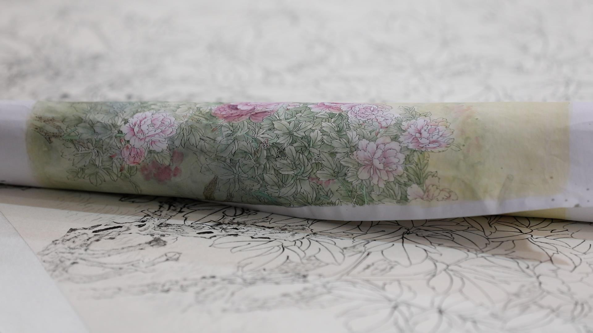 A finished painting of peony flowers, which are the national flower of China. /CGTN Photo
