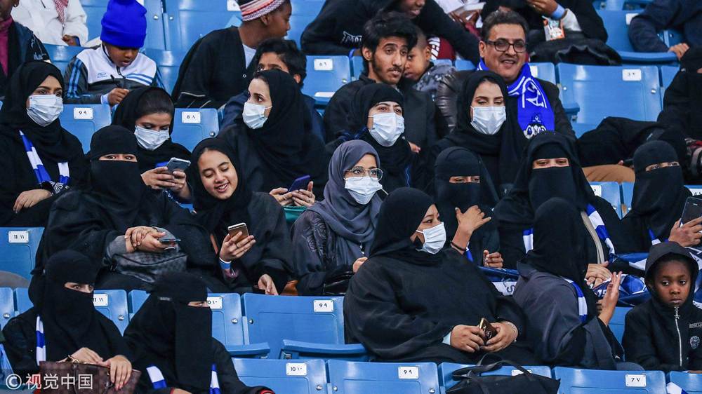 Saudi Arabia allowed women to enter a football stadium for the first time to watch a match, January 12, 2018. /VCG Photo