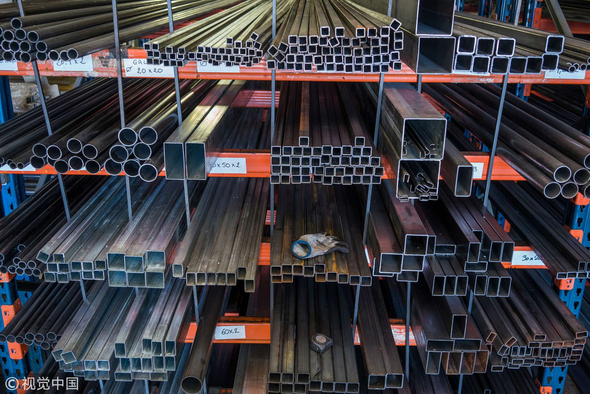 Lengths of steel tube sit in a rack before cutting at LeMetal SARL wholesale storage warehouse in Aubagne, France, March 26, 2018. /VCG Photo