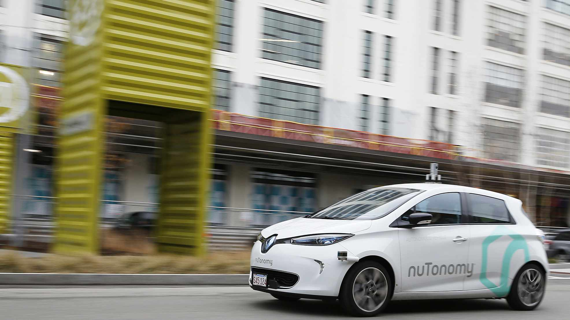 NuTonomy's driverless car, the first to launch in Boston, takes a spin around Drydock Ave. in South Boston on January 4, 2017.