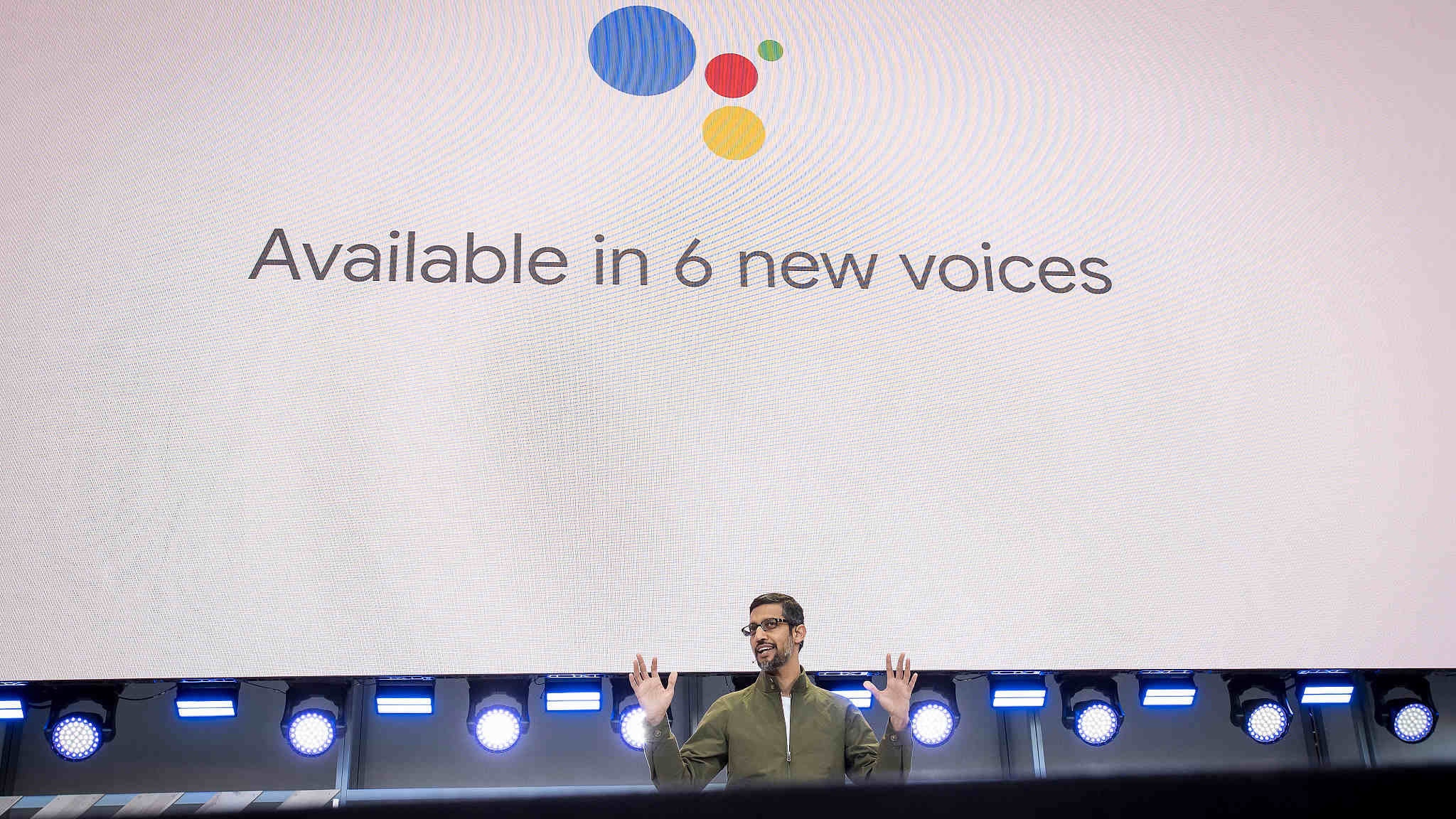 Sundar Pichai, chief executive officer of Google, speaks during the Google I/O Developers Conference in Mountain View, California, US, May 8, 2018. /VCG Photo
