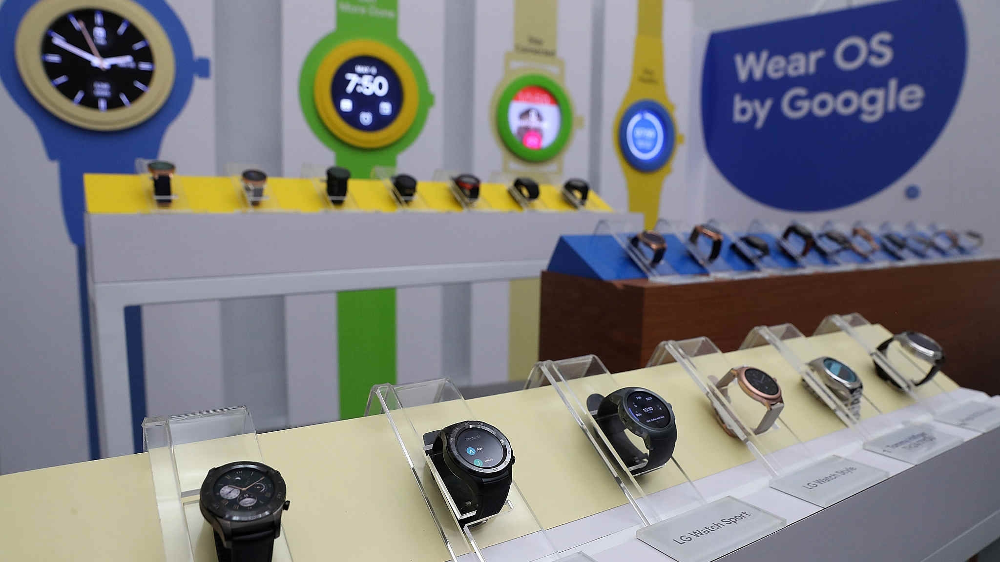 Android smart watches are displayed at the Google I/O 2018 Conference at Shoreline Amphitheater on May 8, 2018 in Mountain View, California. /VCG Photo