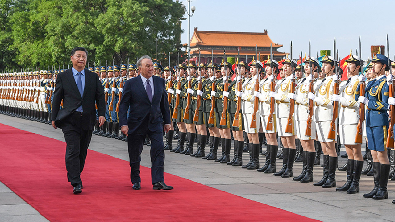 Chinese President Xi Jinping welcomed Kazakh President Nursultan Nazarbayev at the Great Hall of the People in Beijing on Thursday. Nazarbayev is on a state visit to China and will attend the Shanghai Cooperation Organization Summit in Qingdao.