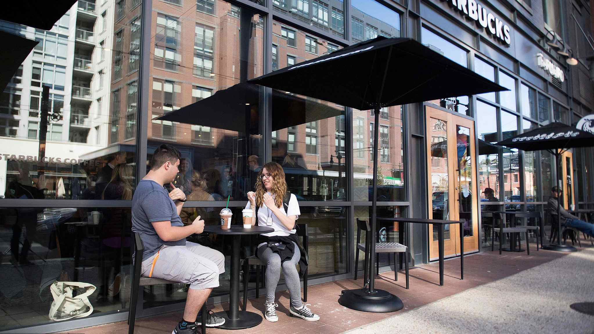 At first glance, it doesn't look any different from a regular Starbucks, seen on seemingly every other street corner in the US capital. Employees wearing black shirts and green aprons emblazoned with the company logo scurry behind the counter to serve hot drinks, cold drinks and pastries to an eager clientele.
