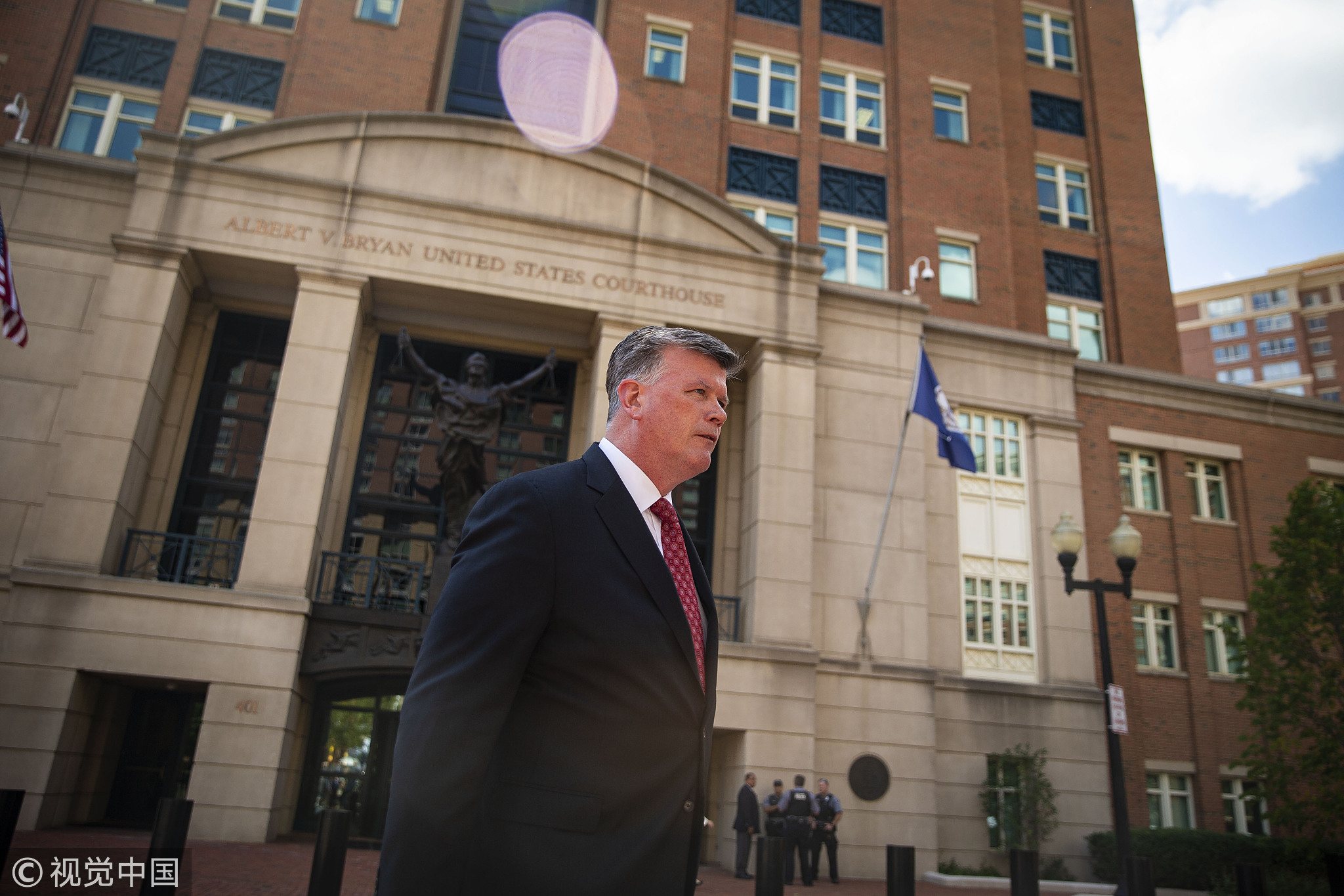 Kevin Downing walks away after speaking to members of the media outside District Court in Alexandria, Virginia, US, Aug. 14, 2018. /VCG Photo