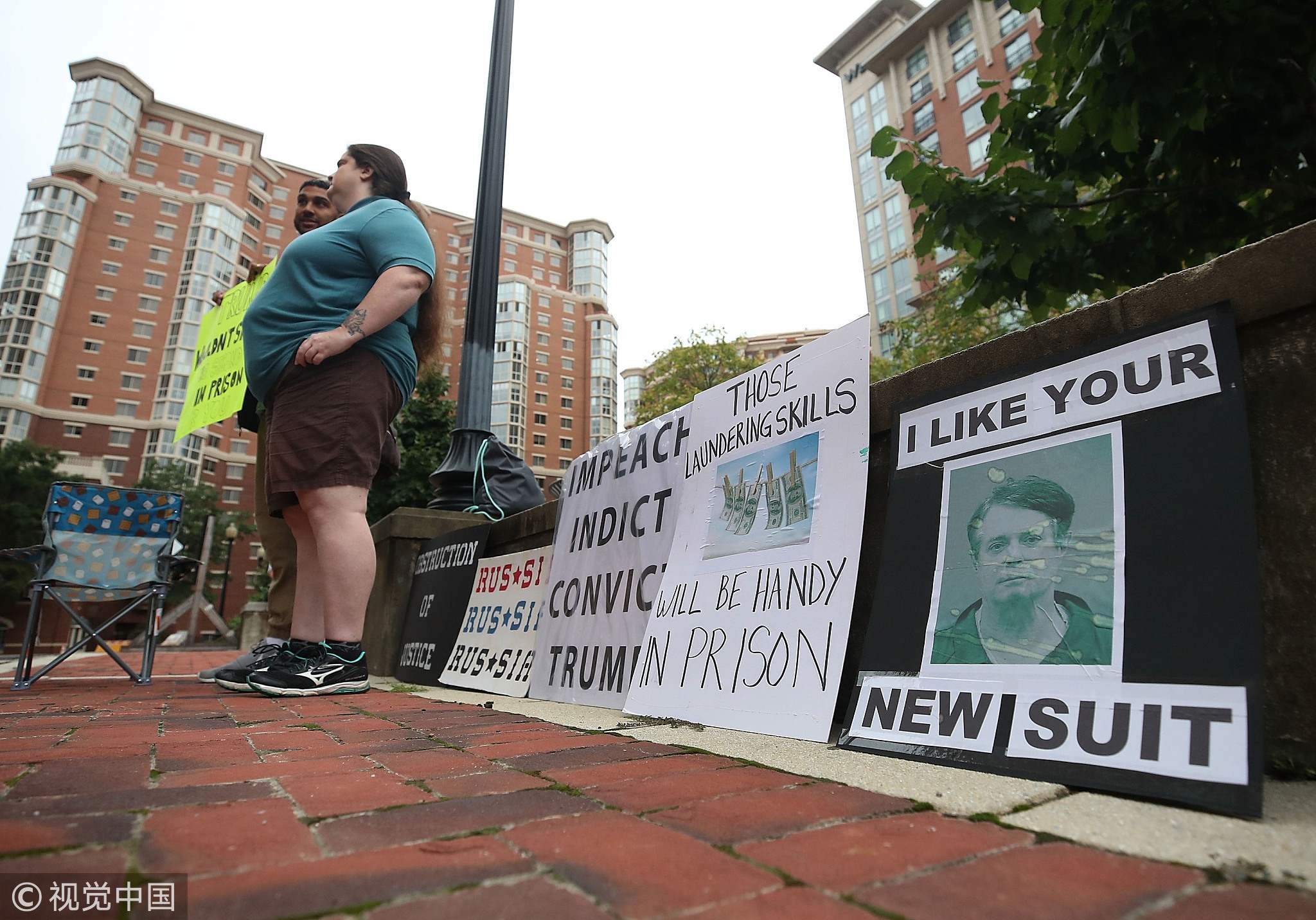Anti Trump and Manafort protesters gather in front of the Albert V. Bryan United States Courthouse where the trial of former Trump campaign manager Paul Manafort starts on July 31, 2018, in Alexandria, Virginia. /VCG Photo