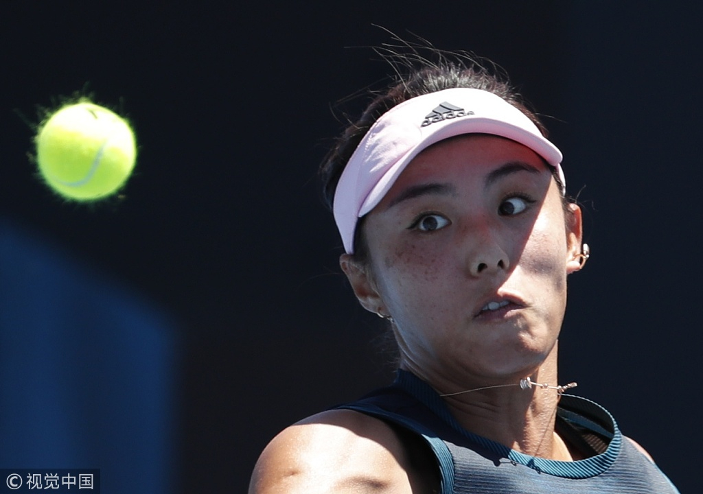 China's Wang Qiang eyes the ball during the match against Latvia's Anastasija Sevastova in the Australian Open. /VCG Photo