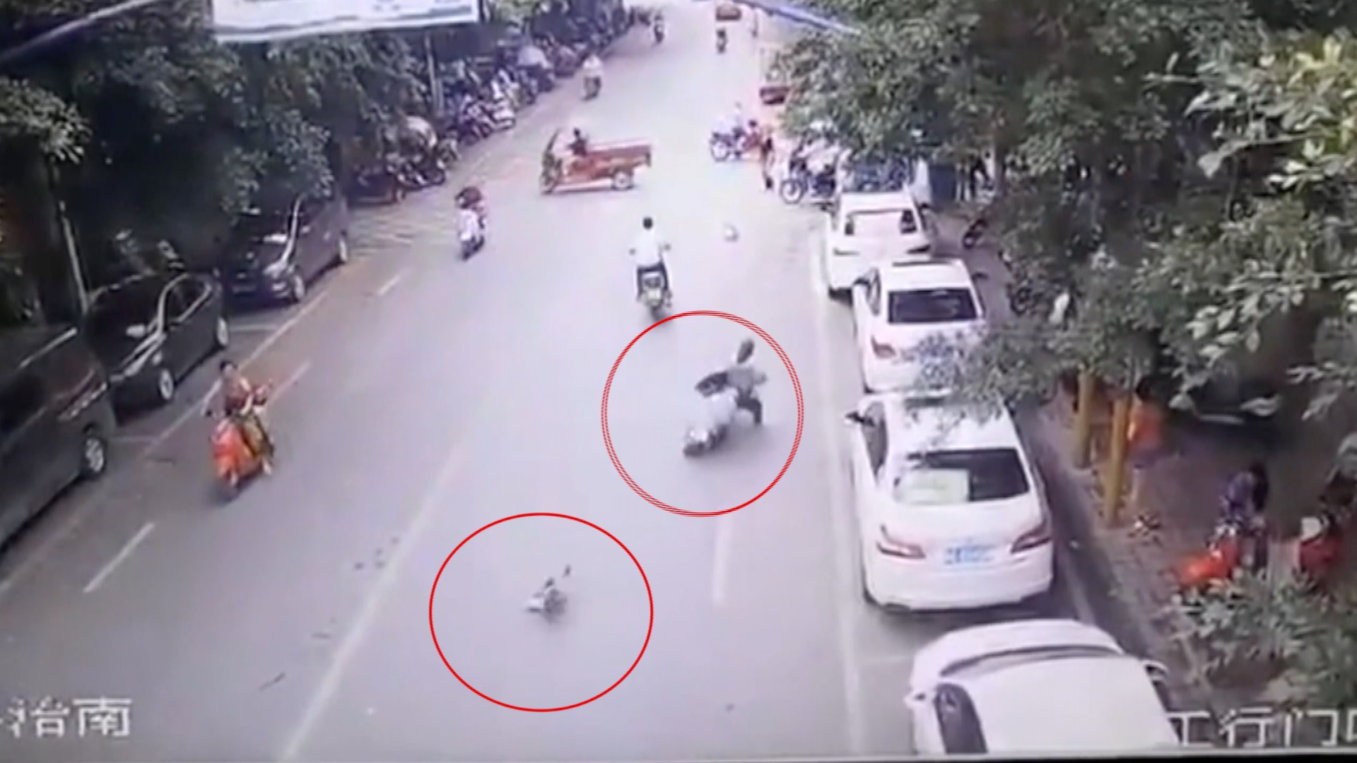 A goose fell out of the sky onto a woman who was riding her scooter in southwestern China.