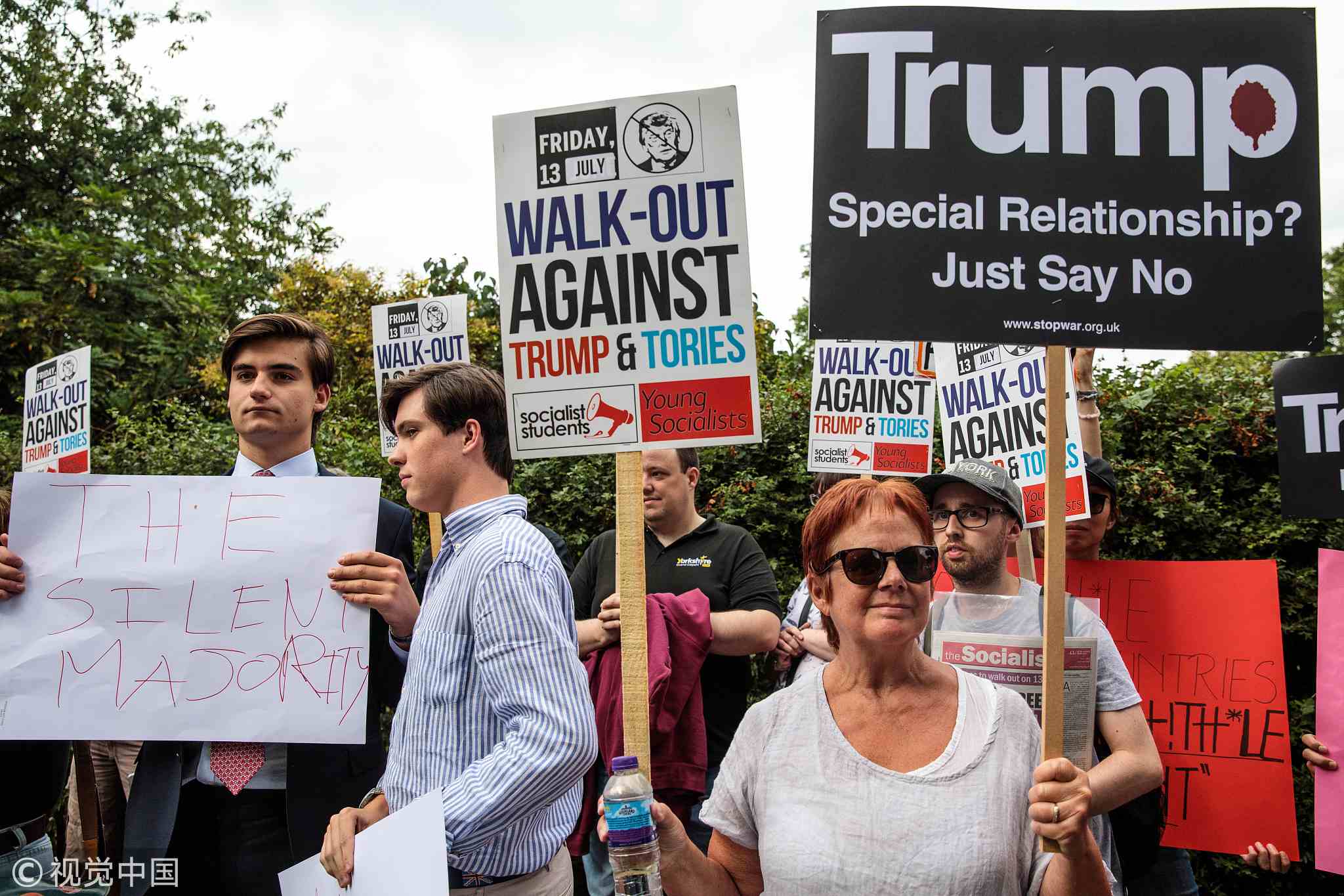 Anti-Donald Trump protesters demonstrate outside Winfield House in London on July 12, 2018. /VCG Photo