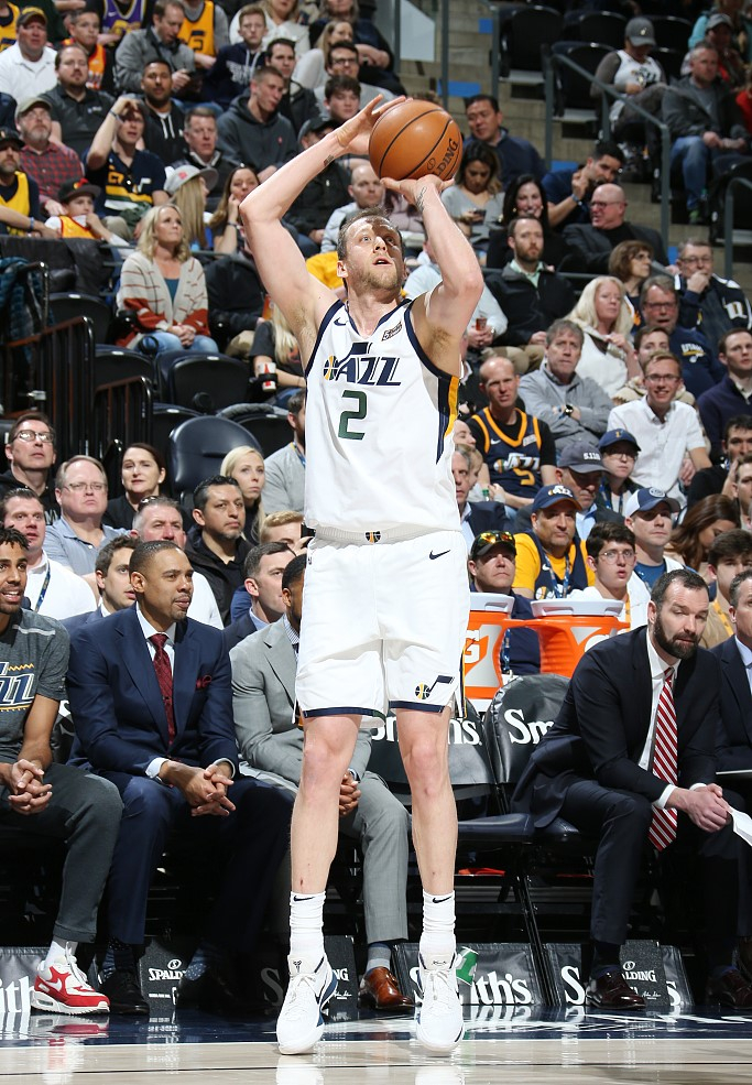 Joe Ingles, Australian forward of the Jazz shoots in the game. /VCG Photo
