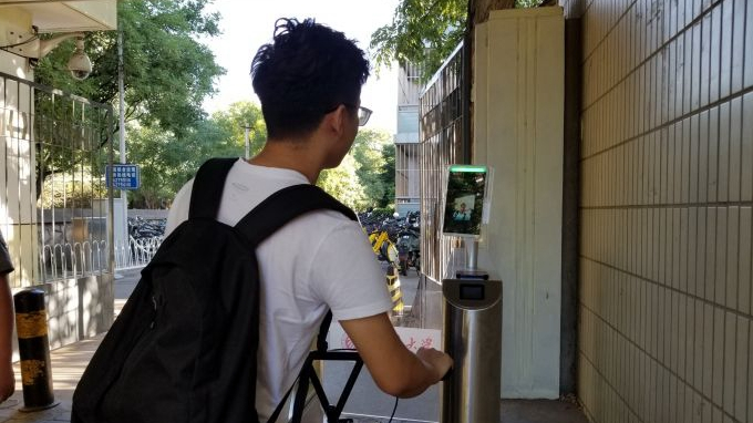 Students entering the campus through the southwest gate have to stop and get their faces scanned by a camera installed in the doorway and wait several seconds while their identity is verified by the facial recognition technology.