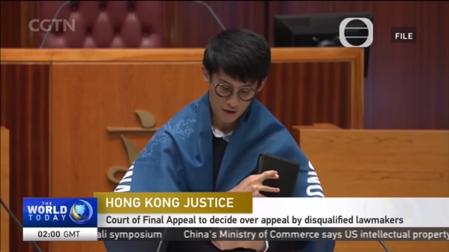 We start the hour in the Hong Kong Special Administrative Region, where the Court of Final Appeal is set to decide whether to accept an appeal made by two disqualified lawmakers. 30-year-old Leung Chung-hang and 25-year-old Yau Wai-ching, caused controversy after deliberately mangling their oaths during a swearing-in ceremony last October. The two replaced the term “Hong Kong Special Administrative Region of the People’s Republic of China” with “Hong Kong nation”. They also held up provocative banners and pronounced “China” as “Shina” – a pejorative term that the Japanese used when they invaded the country during World War Two. Leung and Yau were disqualified by the court in November for failing to properly take the oath.