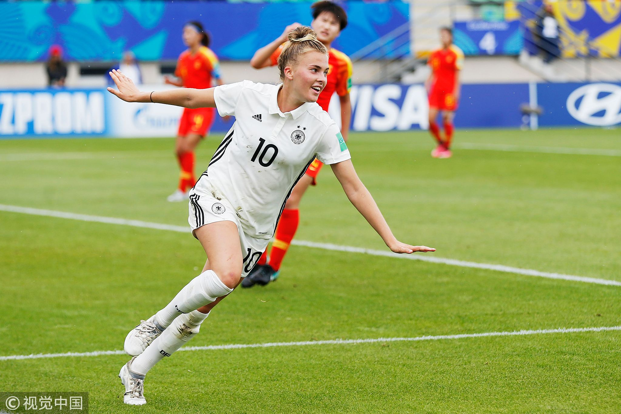 Germany's Laura Freigang celebrates after scoring a goal. /VCG Photo