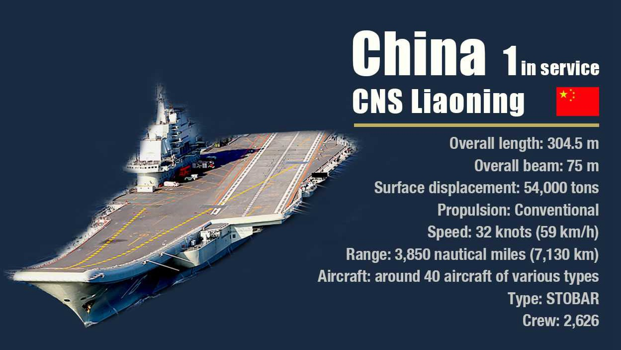 The Liaoning is a refurbished former Soviet aircraft carrier that went through eight years of retrofitting. It is conventionally powered with steam turbines.