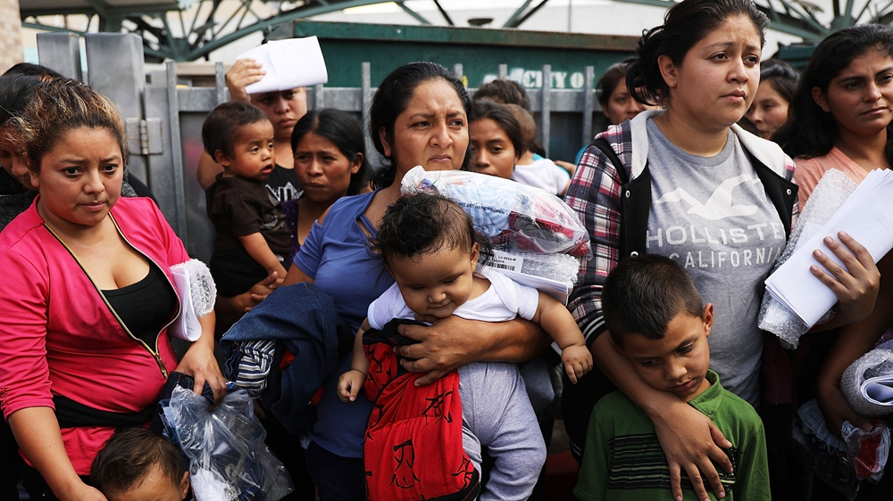 Dozens of women and their children, many fleeing poverty and violence in Honduras, Guatamala and El Salvador, arrive at a bus station following release from Customs and Border Protection in McAllen, Texas, June 22, 2018. /VCG Photo