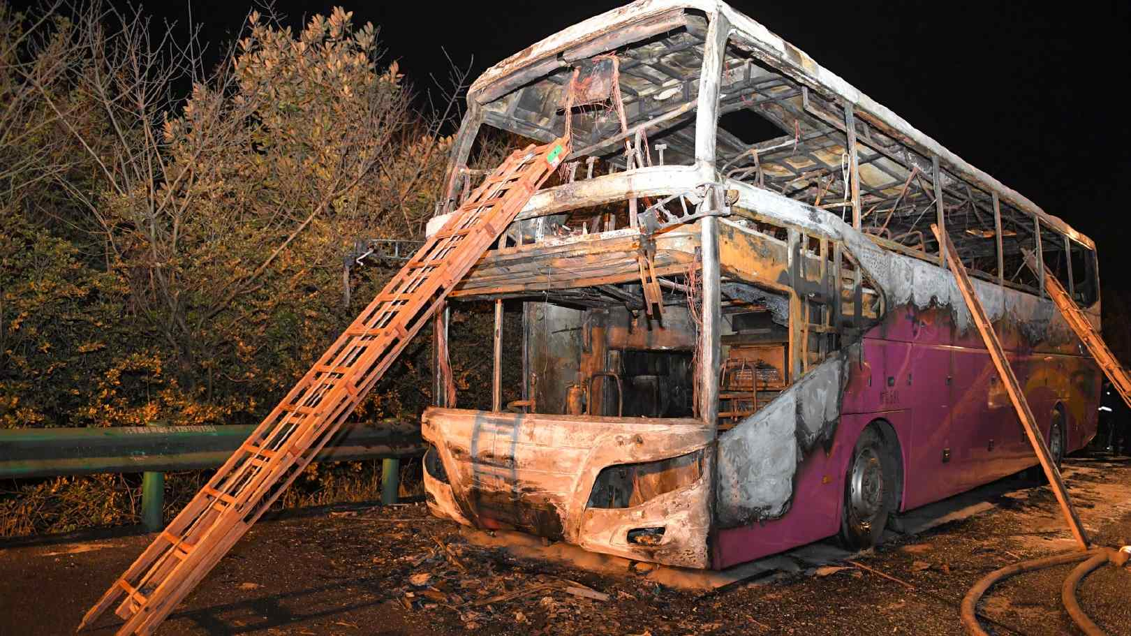 The items exploded and set the 59-seater bus on fire on a highway in Hanshou County in the city of Changde. There were 56 people on board – 53 passengers, two drivers and a tour guide.