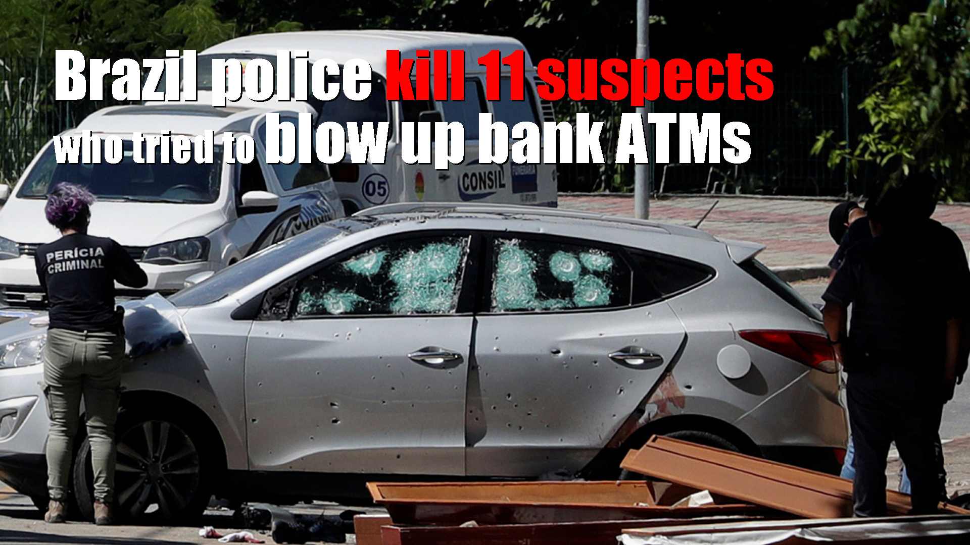 Police in Sao Paulo shot and killed at least 11 assailants who were preparing to blow up automated bank teller machines in Brazil's city of Guararema, 60 kilometers east of Sao Paulo. About 25 suspects were involved, and no police were injured during the operation.