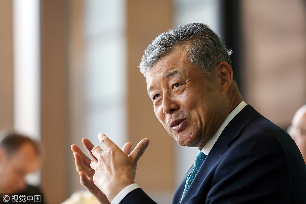 China's Ambassador to the UK Liu Xiaoming gestures while speaking during an interview in London, UK, May 8, 2018. /VCG Photo