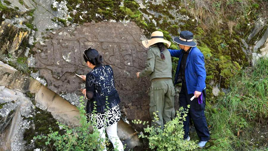 A Tibetan Buddhist rock inscription is newly found in Menyuan Hui Autonomous County in Haibei Tibetan Autonomous Prefecture, Qinghai, China on August. 18, 2018. /Xinhua