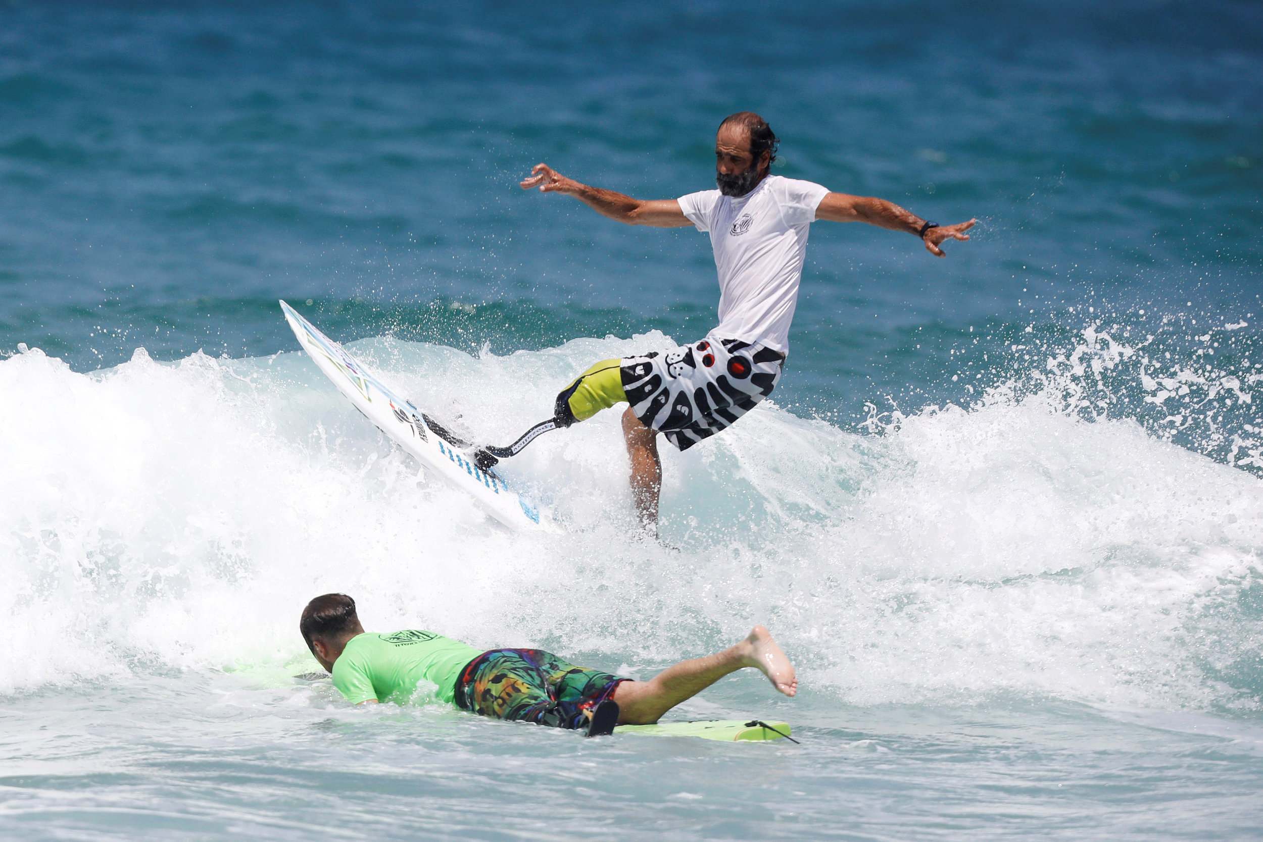 Twenty-one competitors, some of them amputees, paraplegics, deaf or blind, rode the waves assisted by volunteers from the Organization for Advancement of Surfing and Sea Sports in Ashdod. /VCG Photo